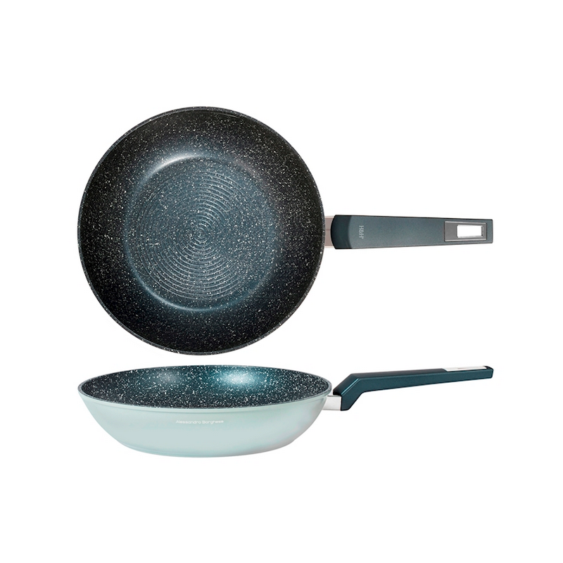 Wok 1 manico in alluminio coniato con rivestimento pietra antiaderente pfluon a spirale adatto anche per piano ad induzione e manico soft touch cm 28.