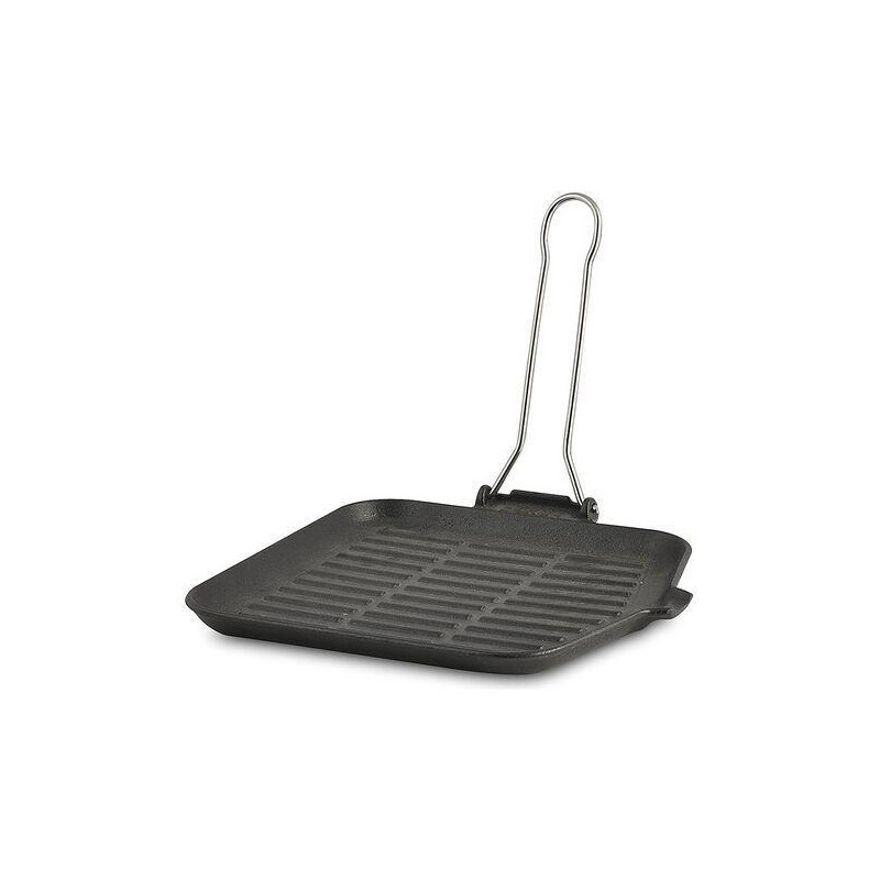 la bistecchiera tonda "dietella" è in ghisa smaltata ed ha il manico pieghevole che la rende più maneggevole e meno ingombrante.