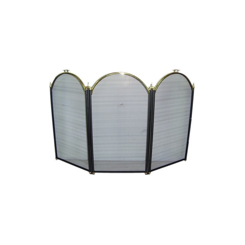 Parascintille a 3 ante tubolare ottonato cm 98x60h per caminetto fuoco