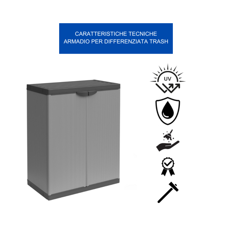 L'Armadietto Per La Raccolta Differenziata Joker Non è Solo Un Semplice Complemento D'Arredo, Ma Un Vero E Proprio Oggetto Di Design Che Si Distingue Per Le Sue Linee Essenziali E Moderne. La Combinazione Di Colore Grigio E Nero Lo Rende Versatile E Adattabile A Qualsiasi Contesto, Sia Interno Che Esterno. Che Sia Collocato In Un Ripostiglio, In Garage, In Cantina O Sul Balcone, Joker Si Integra Perfettamente Con L'Ambiente, Donandogli Un Tocco Di Stile E Raffinatezza