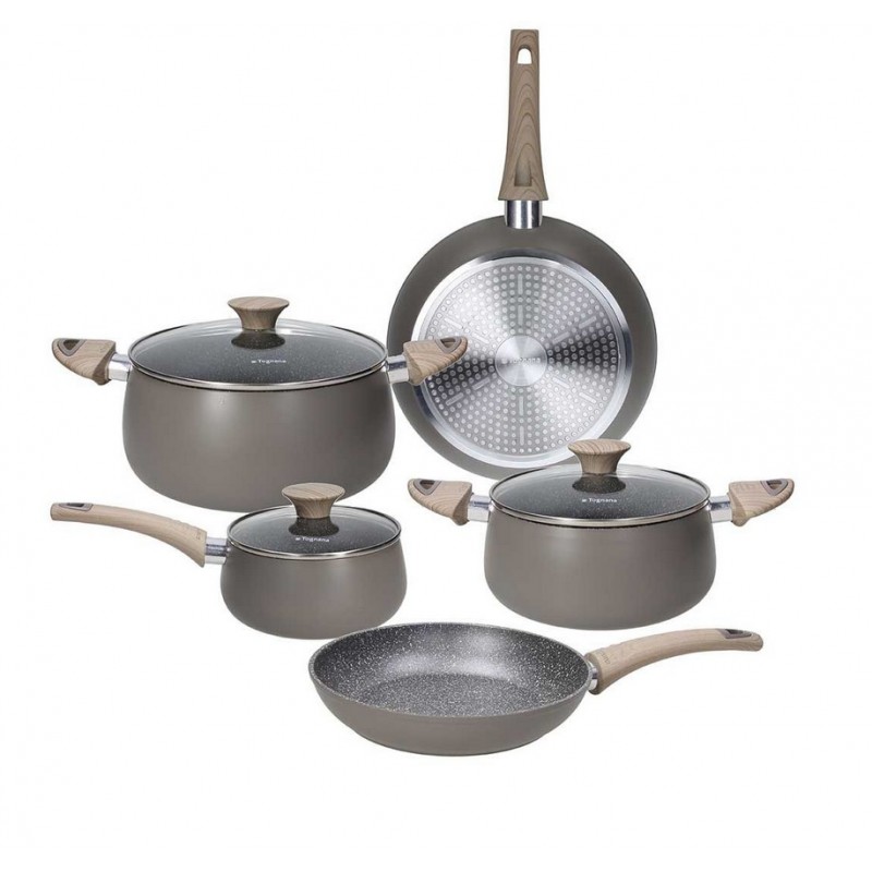 Batteria di Pentole e Padelle 8 Pezzi Alluminio Tortora - Eco-Friendly, Antiaderente, Induzione