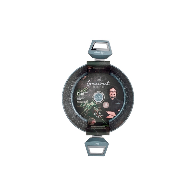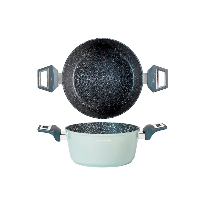 Casseruola con due manici linea H&H Gourmet Collection, firmata Alessandro Borghese. Il tegame è realizzato in alluminio coniato, con fondo adatto a tutti i piani di cottura, inclusi vetroceramica ed induzione.