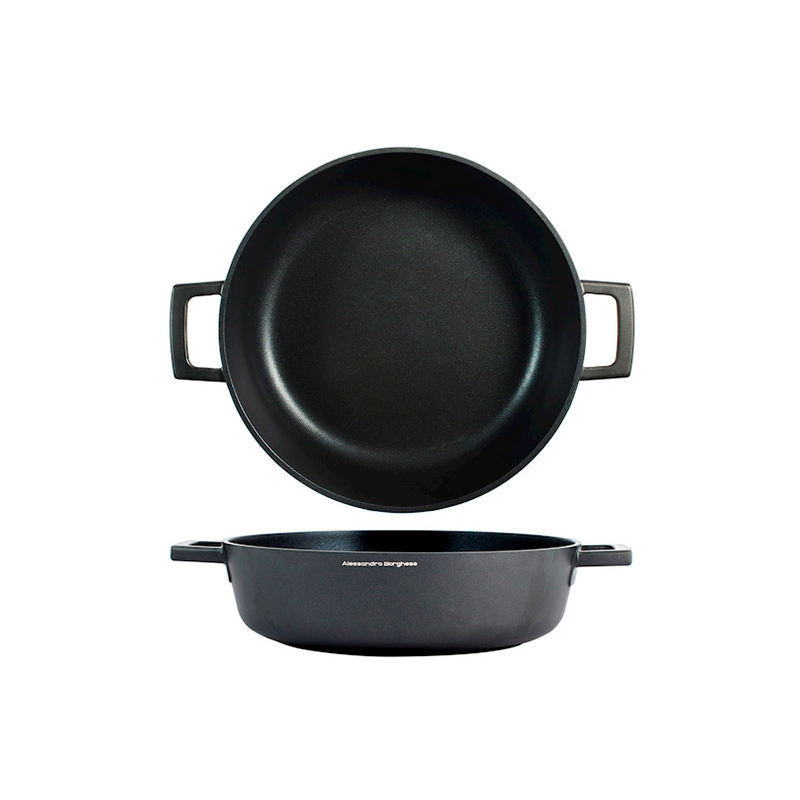 Tegame 2 manici borghese equipe in alluminio pressofuso con rivestimento antiaderente pfluon adatto anche per cottura su piano ad induzione cm 28.