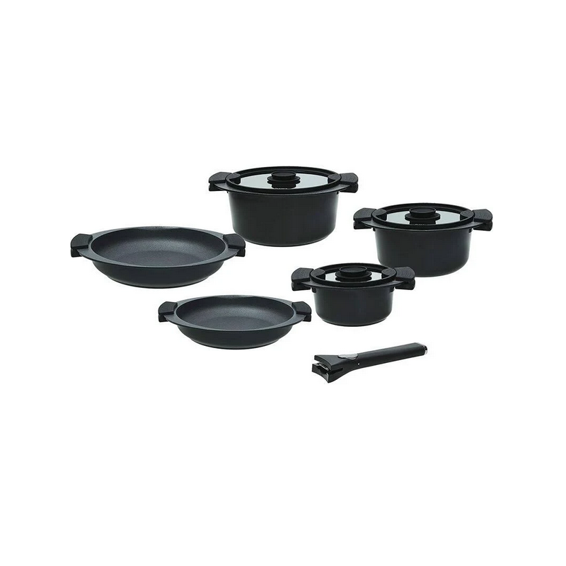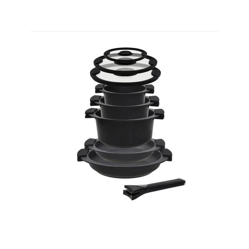 Garantisce un'elevata resistenza a graffi e abrasioni Rivestimento esterno a base di acqua per un'ottima resistenza alle alte temperature e un basso impatto ambientale Manico amovibile in bakelite brevettato e adatto a tutti i corpi pentola: ottima soluzione salvaspazio per i mobili della cucina e la lavastoviglie.