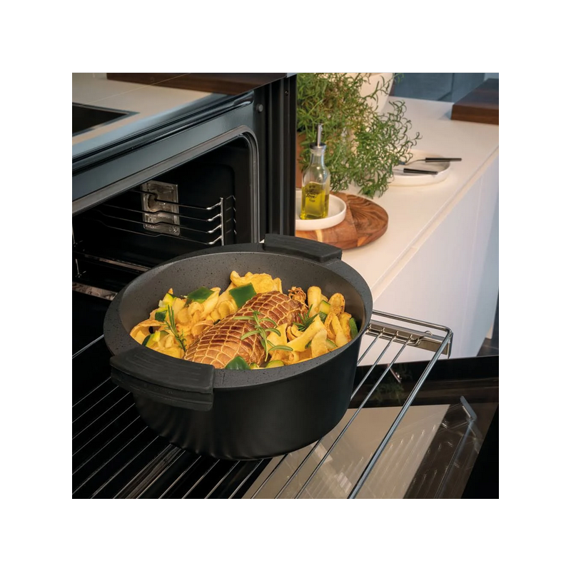 Finiture curate nel minimo dettaglio dal designer Andreas Seegatz Rivestimento interno antiaderente marmorizzato a 5 strati e rinforzato con minerali duri.