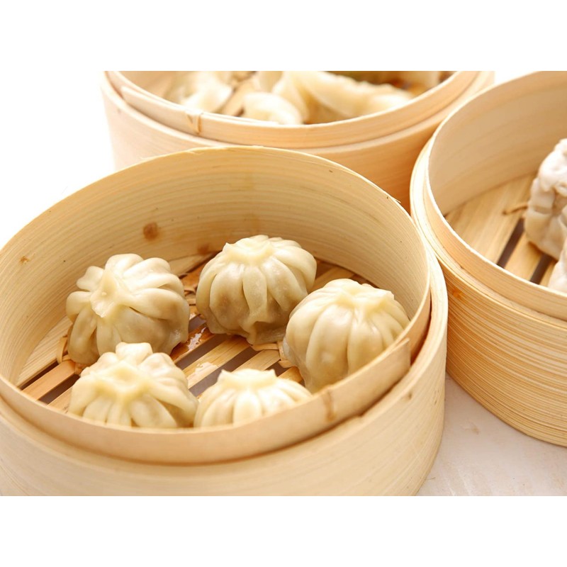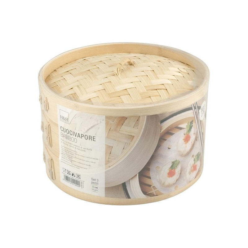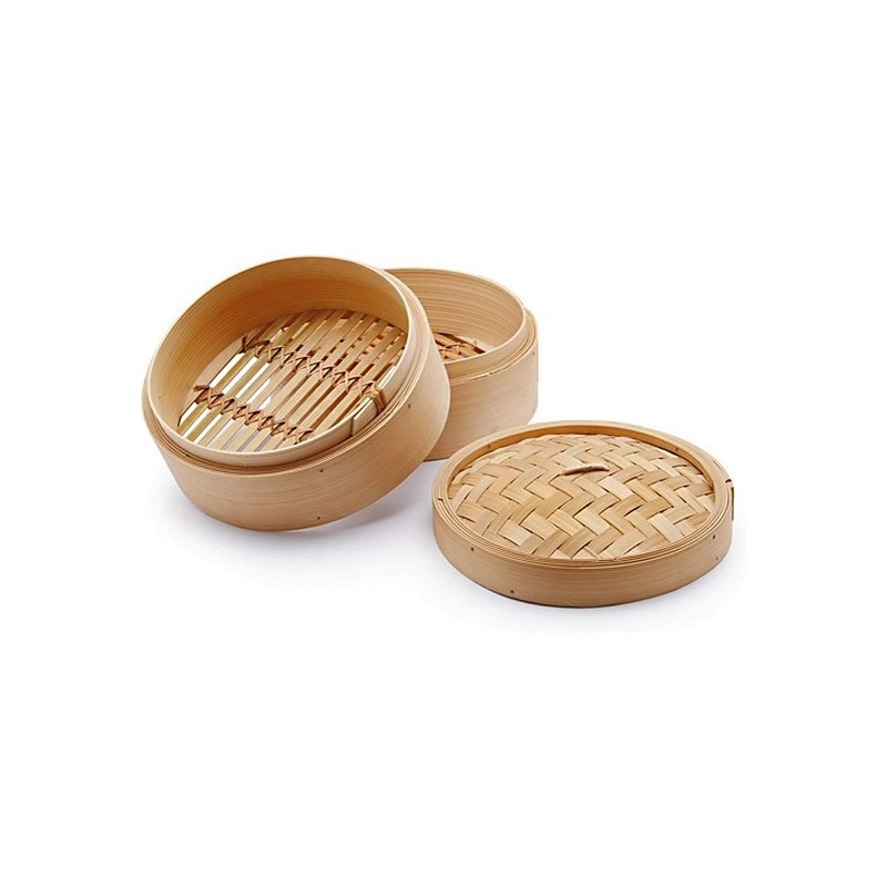 - Cuocivapore in bamboo 3 pezzi per cottura a vapore 20 cm