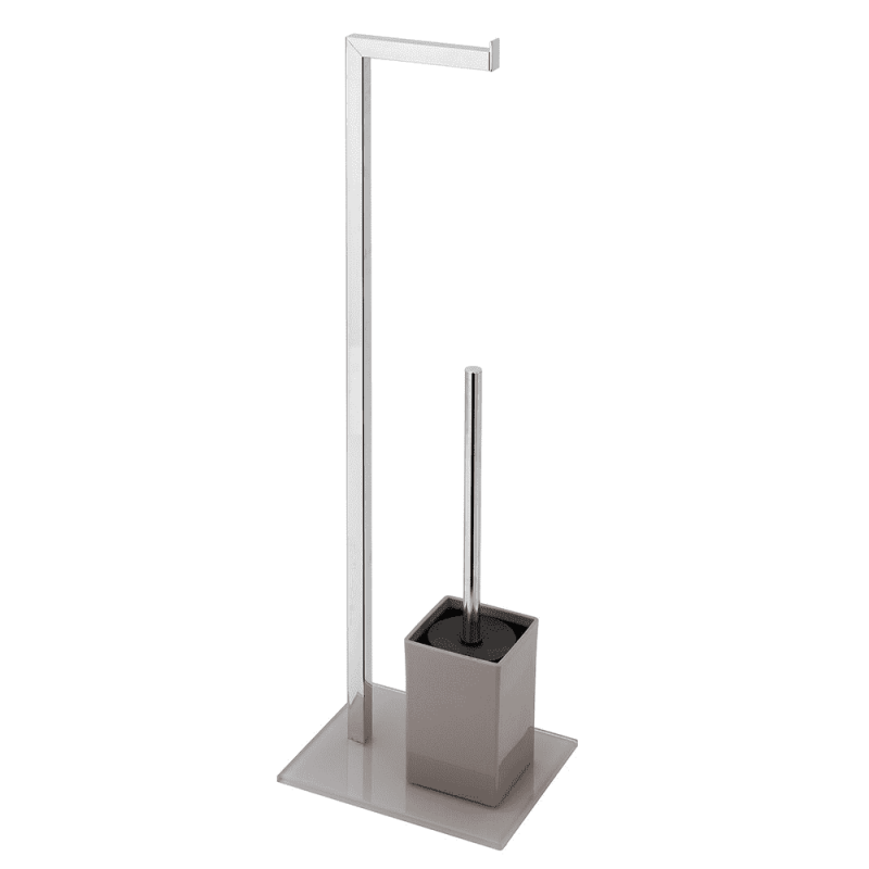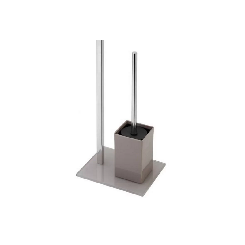 Piantana porta scopino e porta rotolo in acciaio Cromo con base in Vetro Temperato Tortora L'attenzione ai dettagli è ciò che può cambiare il volto del tuo bagno moderno.