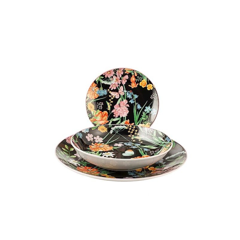 Servizio Tavola 18pz porcellana Caroline Nero H&H