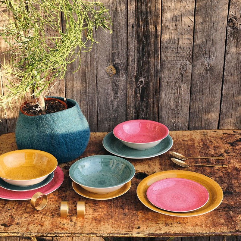 Può essere utilizzato in contesti rustici e accoglienti, grazie alle sue calde tonalità, ed è lavabile in lavastoviglie e idoneo all'uso in microonde.