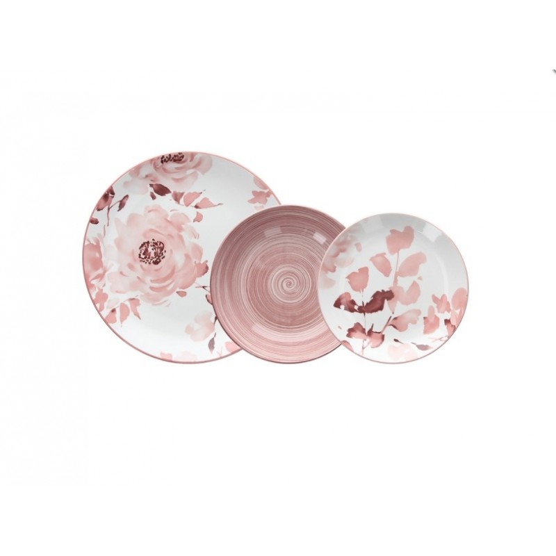 Servizio da 18 Piatti in Porcellana Rosa linea Roselyn