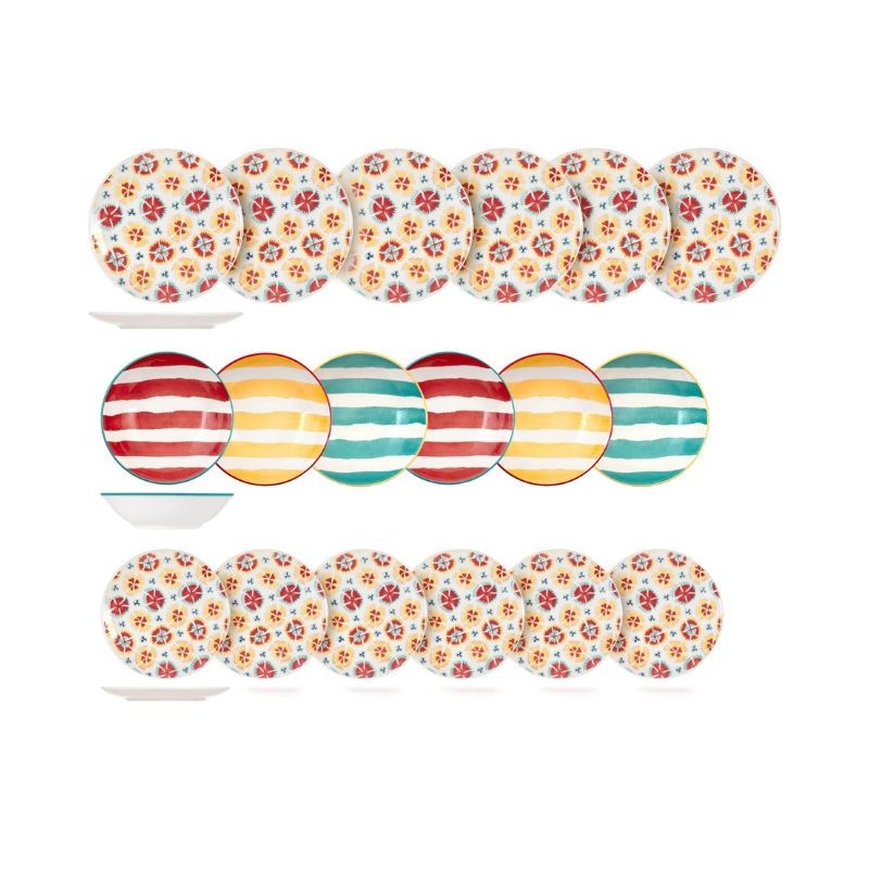- Servizio Di Piatti 18 Pezzi in Stoneware decorato Mix & Mach