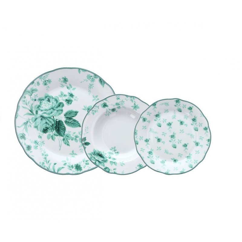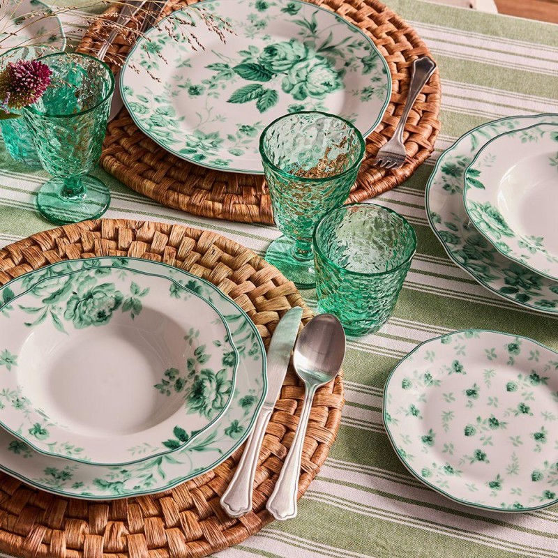 - Servizio Piatti Da Tavola 18 Pezzi In Porcellana Country Floreale Verde E Bianco Linea Botanika