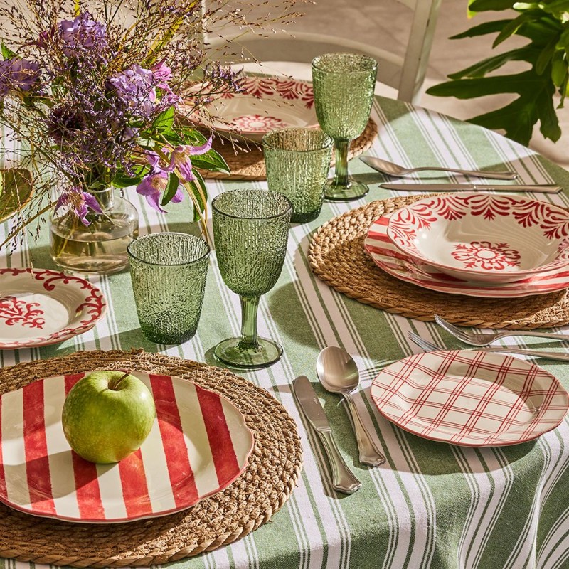 Immagina questo: una tavola apparecchiata con eleganza, decorata con colori forti e vivaci. I tuoi commensali ammirano i piatti in porcellana finissima, ornati da motivi geometrici rossi. Un sorriso si disegna sui loro volti mentre si preparano a gustare un delizioso pasto.