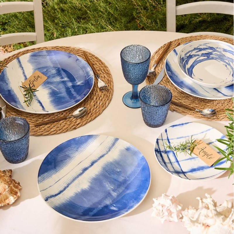 I 18 pezzi inclusi nel set ti permettono di apparecchiare una tavola completa per sei persone. I piatti sono decorati con motivi marini in blu e bianco
