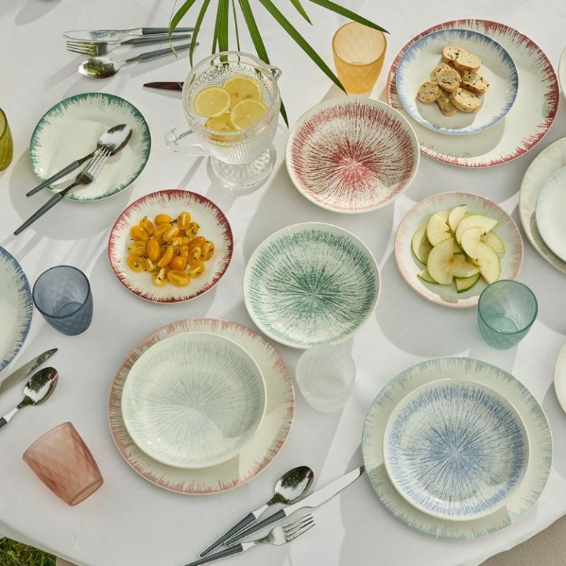 - Servizio Piatti Da Tavola 18 Pezzi In Porcellana Multicolore Con Motivo A Schizzo Lucille
