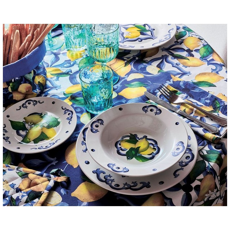 Realizzato in fine porcellana blu, il servizio è perfetto per una mise en place estiva, che porta con sé il profumo dei limoni freschi e l'eleganza del Mediterraneo.