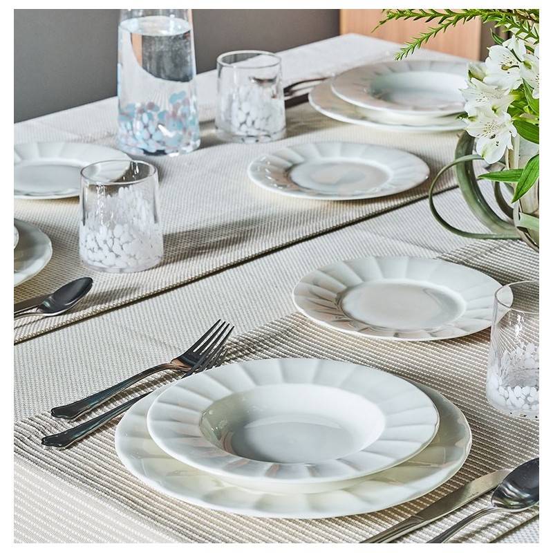 Perfetto per creare un’atmosfera luminosa e accogliente in ogni occasione, il servizio Queen unisce estetica romantica e funzionalità quotidiana. È lavabile in lavastoviglie e utilizzabile in forno a microonde, per un utilizzo pratico senza rinunciare allo stile.