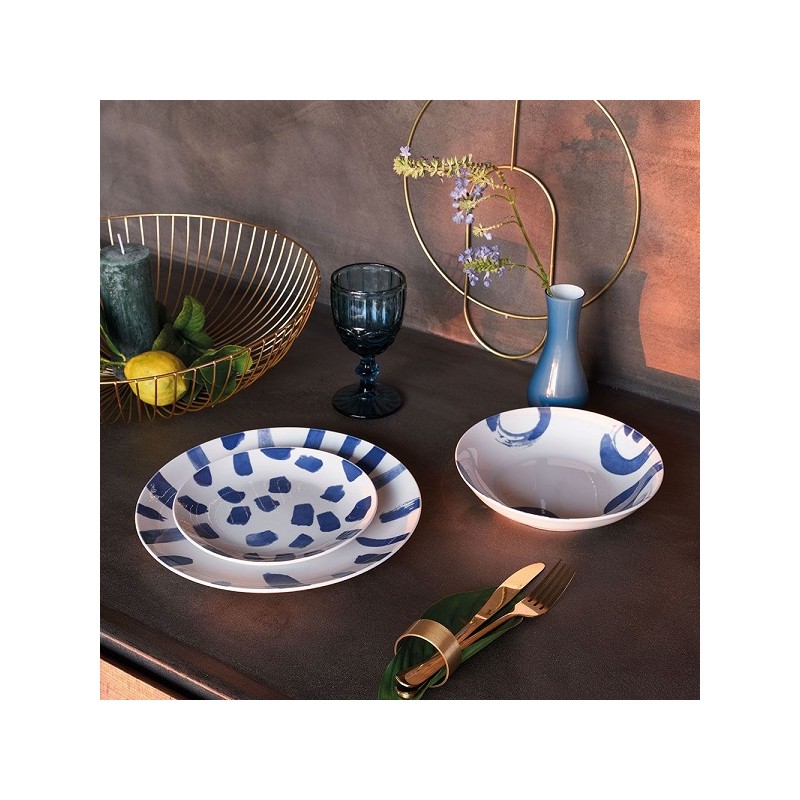 Servizio piatti 18 pezzi modello paint in porcellana blu linea madison