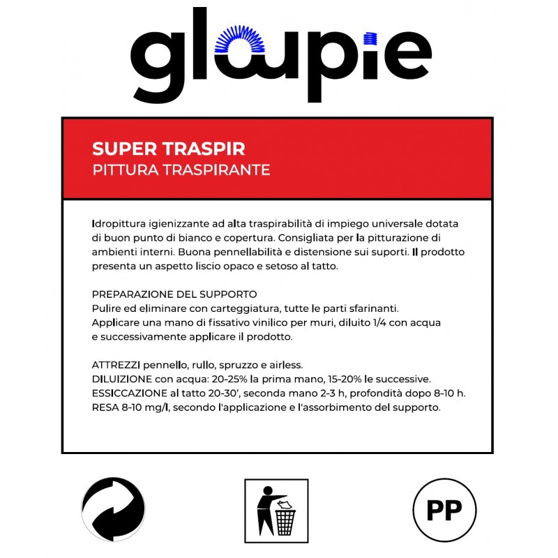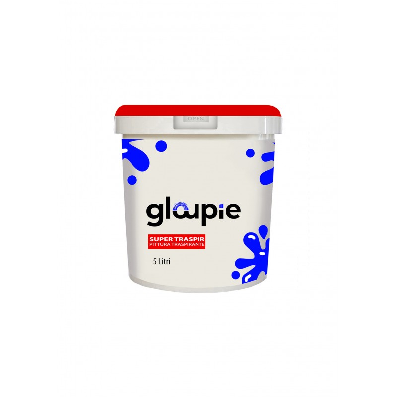 - GLOUPIE SUPER TRASPIR Pittura All'Acqua Traspirante Per Pareti Per Tutti Gli Ambienti Interni , 5 Litri , Bianco, Made In Italy