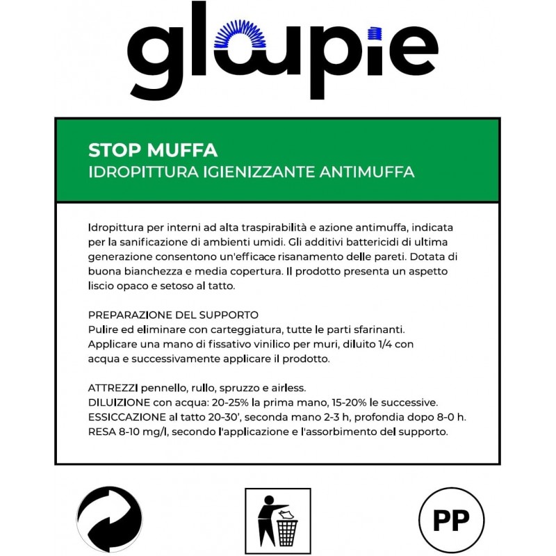 - GLOUPIE STOP MUFFA Pittura All'Acqua Antimuffa Traspirante Per Pareti Ambienti Interni, 1 Litro, Bianco, Made In Italy
