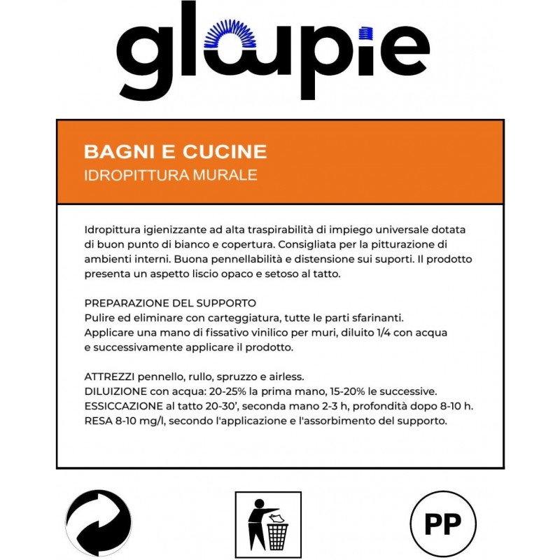 [Qualita' made in italy] : Gloupie bagni e cucine pittura all'acqua traspirante per il decoro di tutte le pareti interne di bagni e cucine, confezione da 13 litri, interamente prodotta e confezionata in italia con materiali di alta qualità