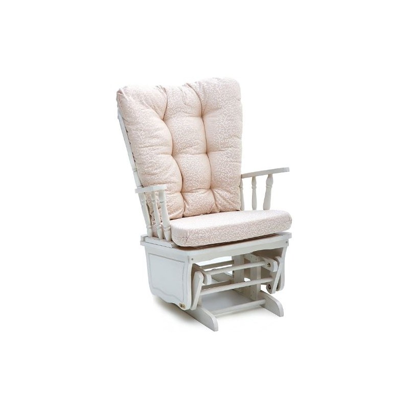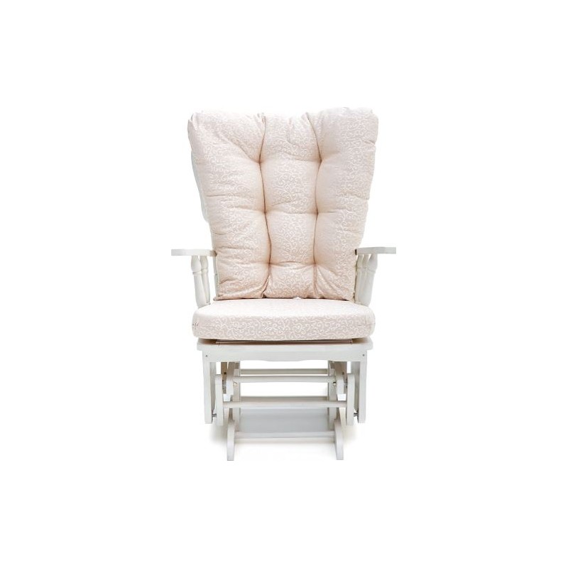 Poltrona Sedia A Dondolo Oscillante Linea Dallas Con Struttura In Legno Massello Color Bianco e Cuscino Trapuntato Beige