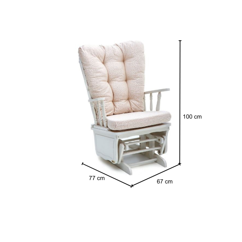 Un'oasi di relax e comfort, perfetta per coccolarti e staccare la spina, con la grande particolarità di interfacciarsi alla perfezione anche per dondolare e cullare i piccoli senza alcuno stress. La struttura in legno massello color bianco decapato è robusta e durevole, e garantirà anni di utilizzo. Il cuscino trapuntato in poliestere beige è morbido e confortevole, e ti avvolgerà in un abbraccio caldo e accogliente. Il movimento oscillante è rilassante e tonificante e ti aiuterà a ritrovare la calma e la serenità, e nel caso tu sia una mamma aiutarti a riprodurre il classico movimento a dondolo della “ninna nanna” per addormentare il bebè. Una scelta perfetta per chi cerca un luogo dove rilassarsi e far rilassare