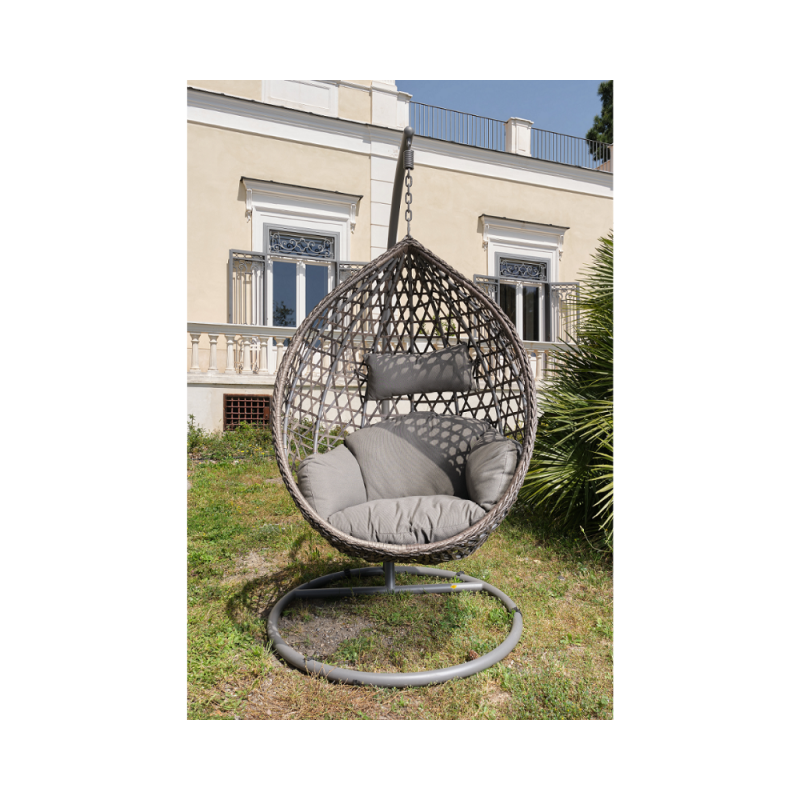 [Realizzata in materiali di alta qualita']: Il dondolo sospeso ha un guscio realizzato in poli-vimini, un materiale idrorepellente resistente ai raggi uv, all'acqua e alle intemperie con una verniciatura a polvere epossidica che garantisce la massima tenuta agli agenti atmosferici. La struttura in acciaio con gancio spesso e doppio sono perfetti per garantire una massima sicurezza e divertimento durante l'oscillazione, evitando possibili cedimenti strutturali. La portata massima e' di 120 kg