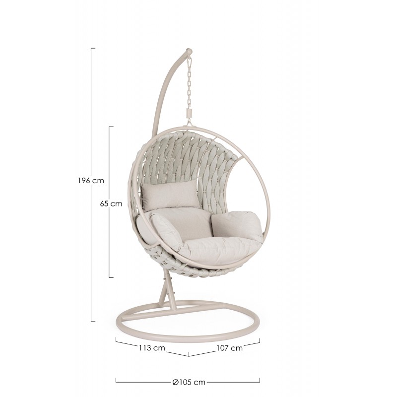 - Poltrona Sospesa Galapagos Light,Struttura in Acciaio, Intreccio in Corda, Cuscini Idrorepellenti,107X113X65 cm,Portata 130 kg