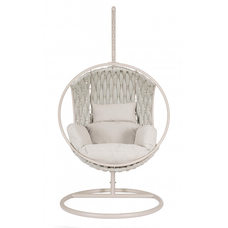 Poltrona Sospesa Galapagos Light,Struttura in Acciaio, Intreccio in Corda, Cuscini Idrorepellenti,107X113X65 cm,Portata 130 kg