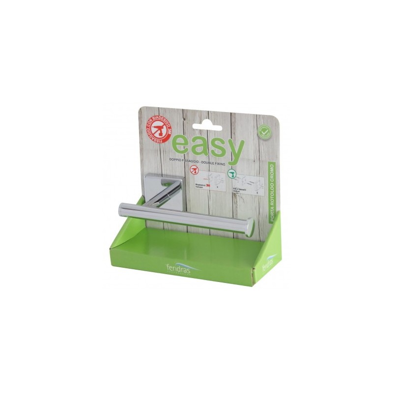Portarotolo in acciaio cromato a doppia modalità di attacco a muro. Completo di biadesivo 3m e viti con tasselli per il corretto fissaggio a parete, linea easy