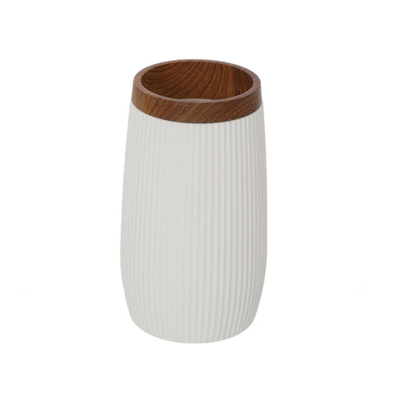 P/Spazzolino Bianco Serie London Porta spazzolino realizzato in plastica color bianco e legno. La serie London by Feridras è caratterizzata da linee semplici e con la particolarità che il tappo e di color legno.