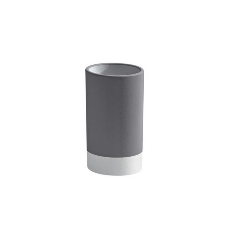 Portaspazzolini da appoggio in ceramica color grigio per arredo da bagno.