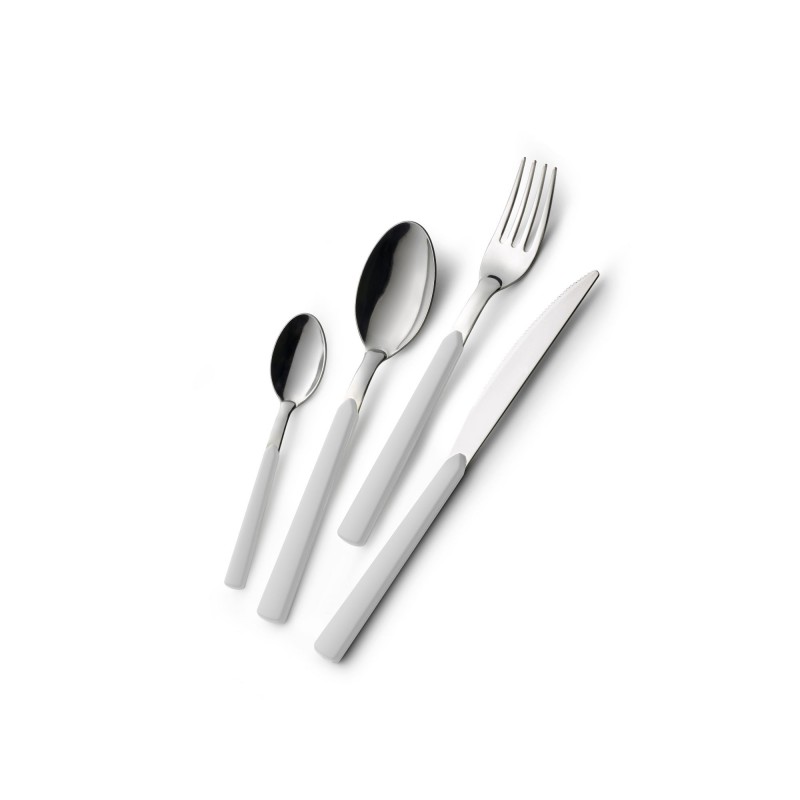 - GLOUPIE Set 24 Posate Loft Bianco Per 6 Persone in Acciaio Inox e Manico In ABS Made In Italy Lavabili In Lavastoviglie