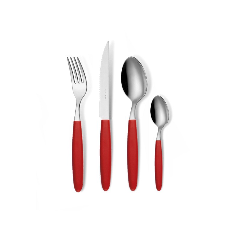 - GLOUPIE Set 24 Posate Light Rosso Per 6 Persone in Acciaio Inox e Manico In ABS Made In Italy Lavabili In Lavastoviglie