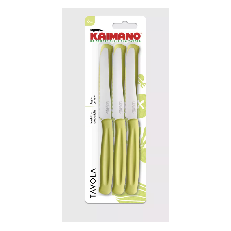 - Set 6 Coltelli Da Tavola Verde Lime Linea Dinamik Con Lama In Acciaio Inox Seghettata