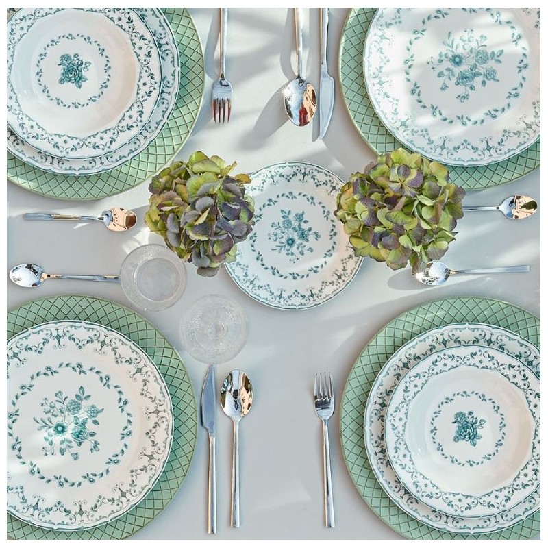 - Set composto da 6 forchette, 6 coltelli, 6 cucchiai da tavola e 6 cucchiai da dolce