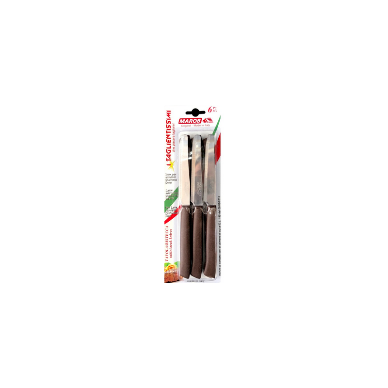 Manico in polipropilene marrone e lama seghettata in acciaio inox.