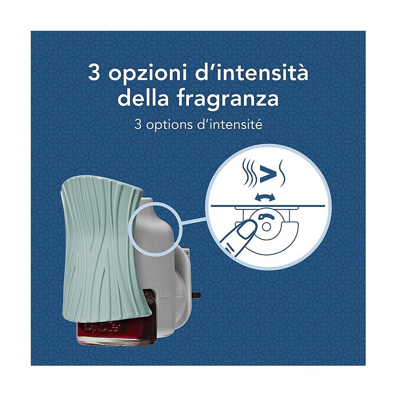 L'intensità del profumo alla base è regolabile in tre livelli.