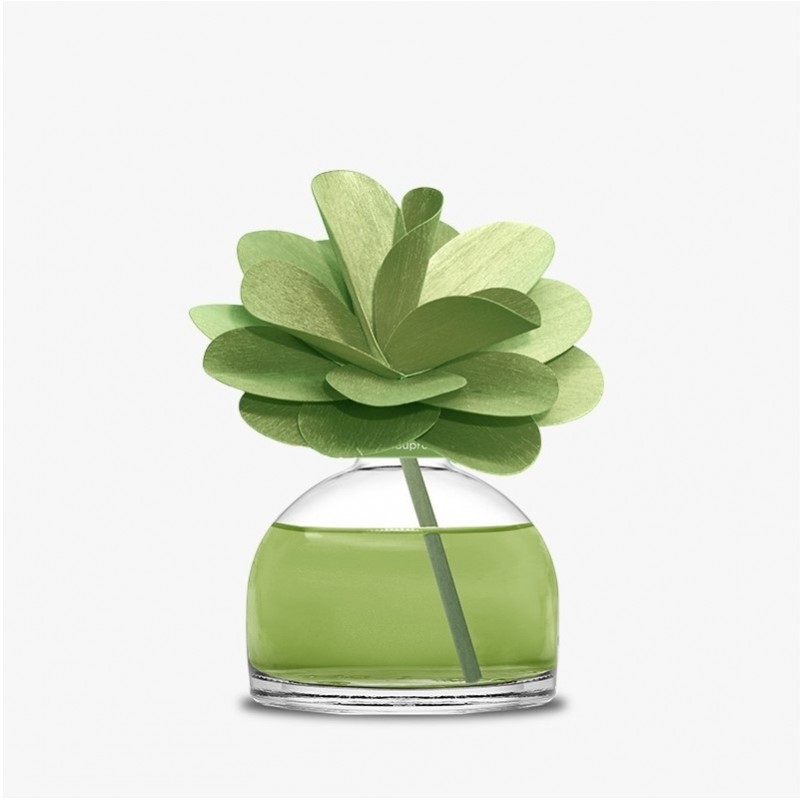 rofumatore d'ambiente in bottiglia di vetro con diffusore a forma di fiore in legno di betulla realizzato a mano. MOSTO SUPREMO La fragranza seducente che cattura econfonde tutti i sensi. Profumo irresistibile che si dischiude con un delicato movimento profondo, donato dall’intensa nota di uva fragola e dalla delicata sfumatura di vaniglia