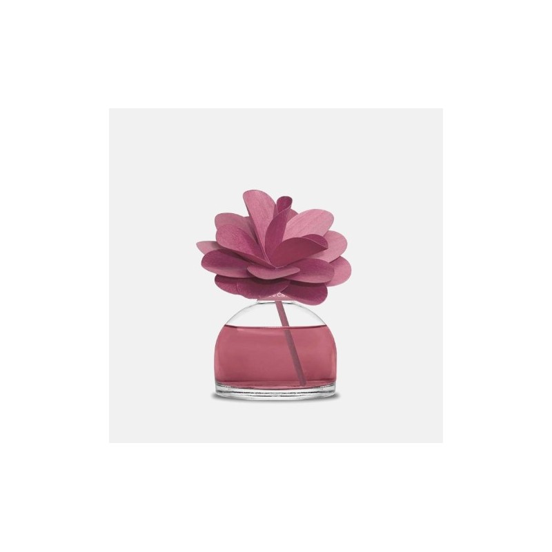 Profumatore d'ambiente in bottiglia di vetro con diffusore a forma di fiore in legno di betulla realizzato a mano. Melograno L’intenso profumo dell’arancio si alterna alla delicata fragranza di pesca ed al fresco sentore del melone, riportando alla mente le assolate campagne siciliane, accarezzate dal vento carico di dolci note fruttate, ammorbidite da un fondo di cocco e vaniglia e caratterizzate da un deciso sentore di legno di cedro. Dimensioni Altezza 16,5 cm Diametro 9,2 cm Diametro fiore 11 cm