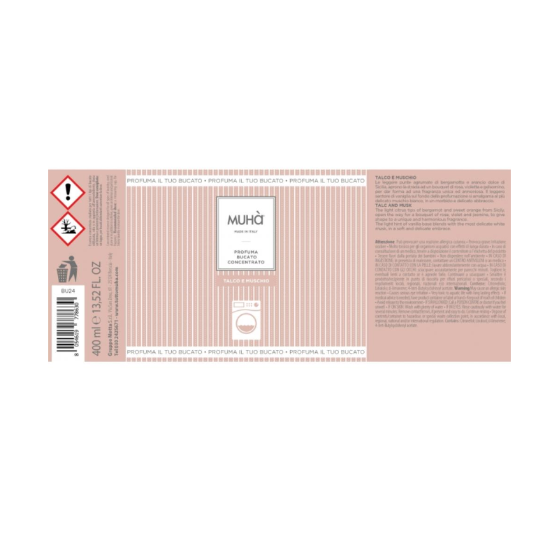 - Profuma Bucato Concentrato Per Lavatrice Muhà Fragranza Talco e Muschio 400 ml