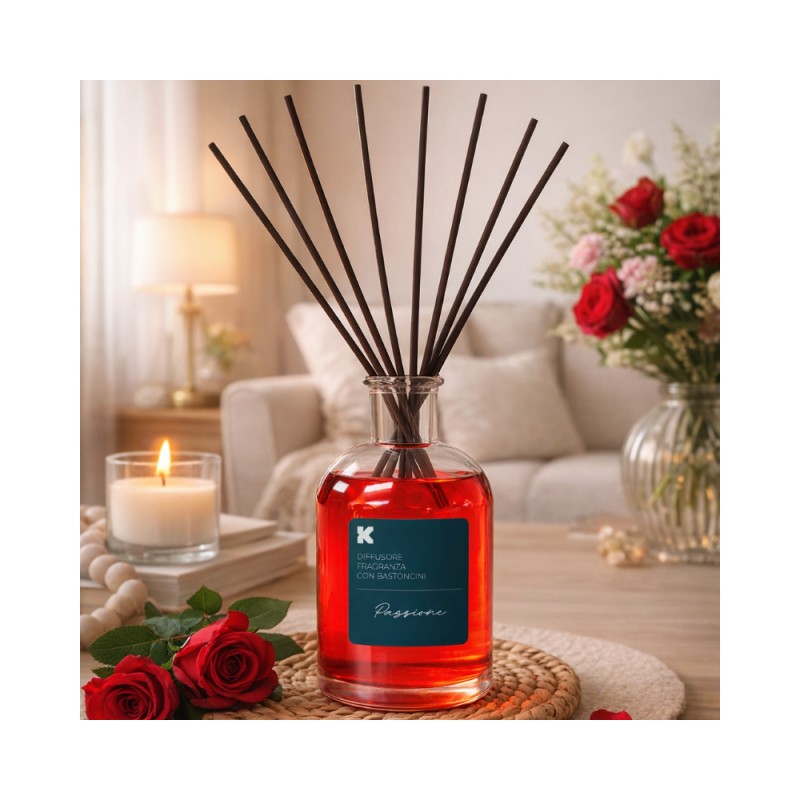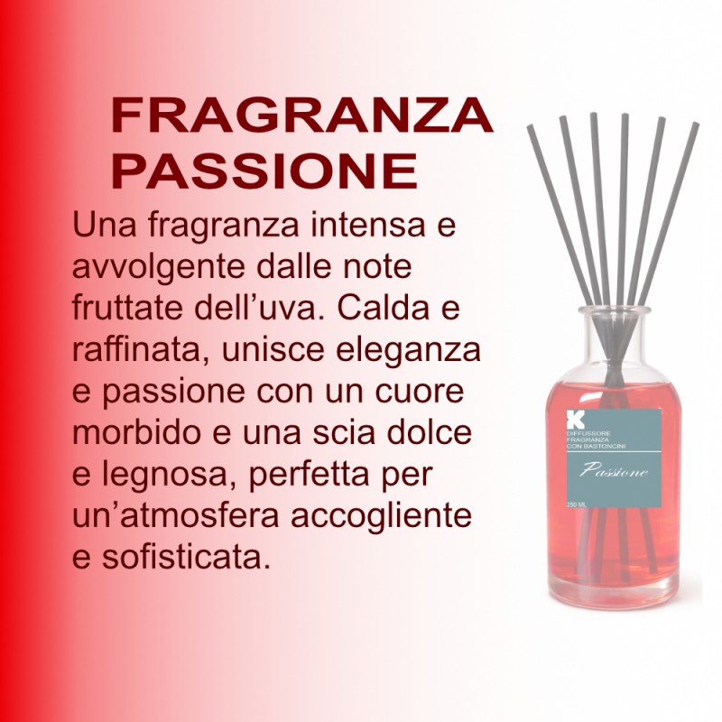 - KLULK Diffusore Profumo Ambiente Con Bastoncini Fragranza Passione 250ml Lunga Durata E Intensità Made In Italy