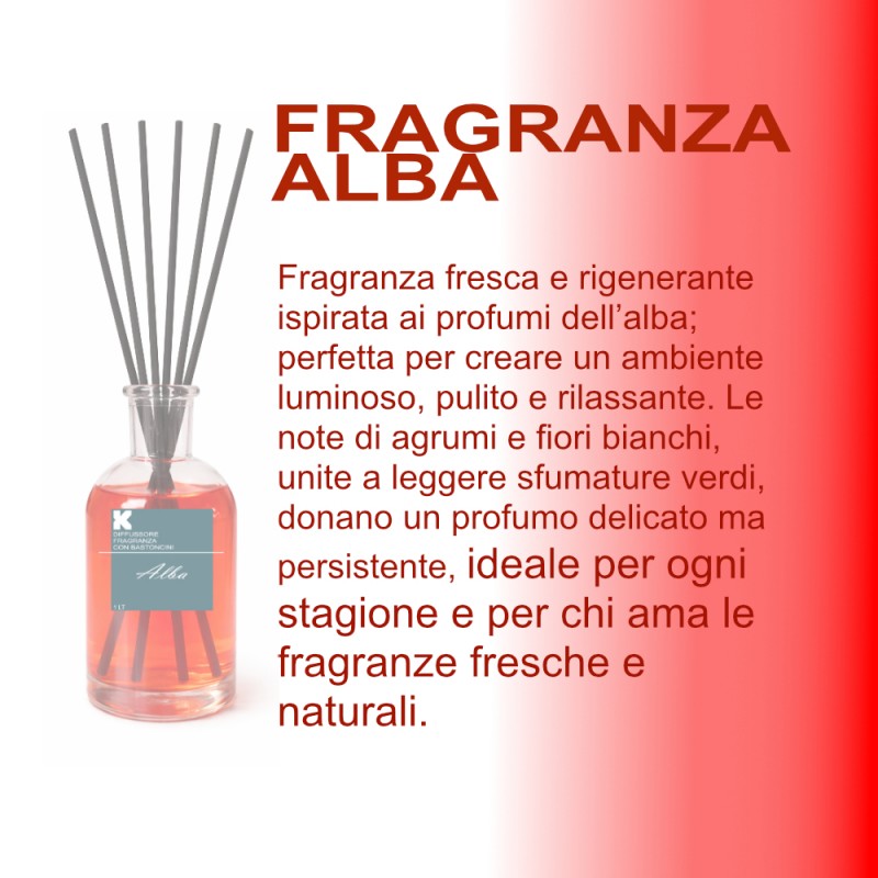 - KLULK Diffusore Profumo Ambiente Con Bastoncini Fragranza Alba 1 LT Lunga Durata E Intensità Made In Italy