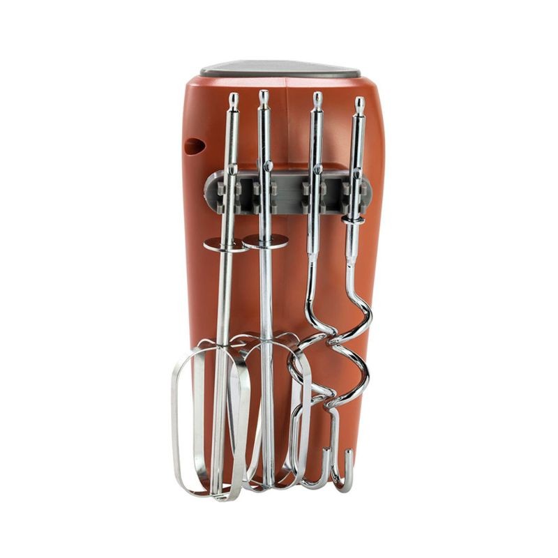 Dotato di fruste e ganci impastatori in acciaio inox da riporre comodamente nello spazio porta accessori incorporato, lo sbattitore Iridea rappresenta il tuo perfetto alleato in cucina per torte e creme, pratico e funzionale, dal design unico e inconfondibile.