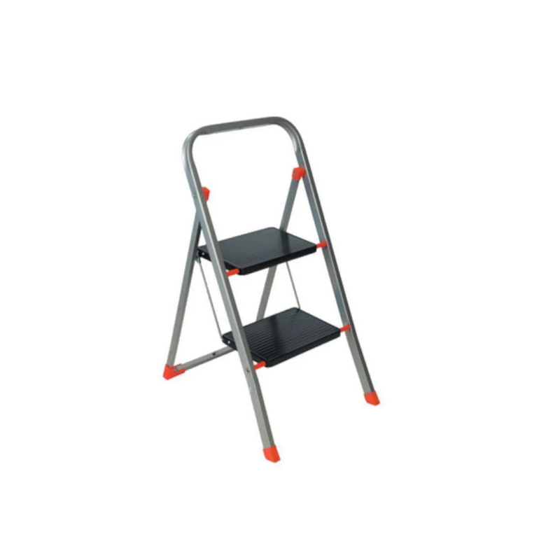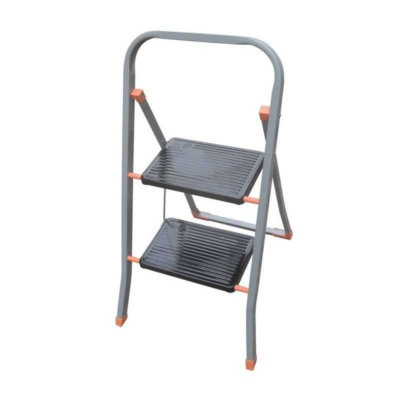 Sgabello d'acciaio in tubolare da 20x15 mm, di facile utilizzo e dall'ottimo rapporto qualità/prezzo, è adatto all'uso anche non professionale ed hobbystico. E' in regola con la normativa europea EN 131. Ha gradini in acciaio che misurano 20x30 cm, ed è verniciato con brillanti polveri epossidiche in un'allegra combinazione di colori: il telaio è grigio, i gradini sono neri e le plastiche sono arancio. Ha 2 gradini, ed altezza di 50 cm.