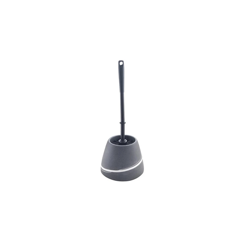 Scopino wc da appoggio in resina grigio con ciuffo in setole per sala da bagno .