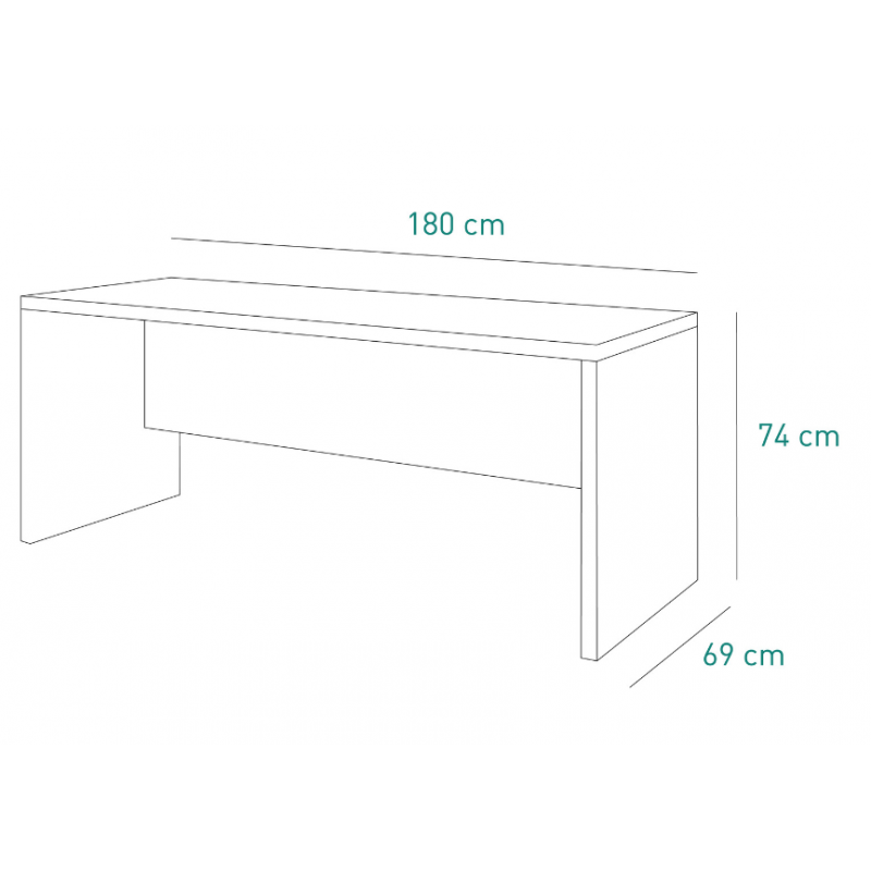 Scrivania Per Ufficio, Studio e Casa Design Moderno in Legno Nobilitato Color Cemento Linea Pratico L 180 cm