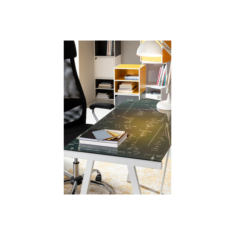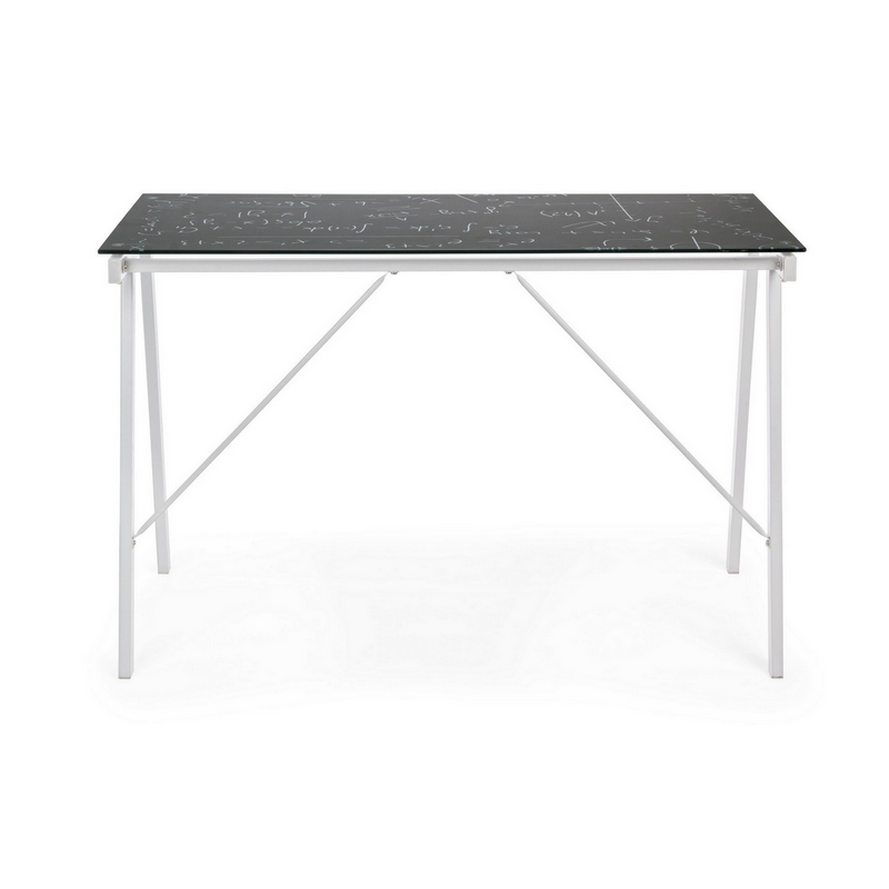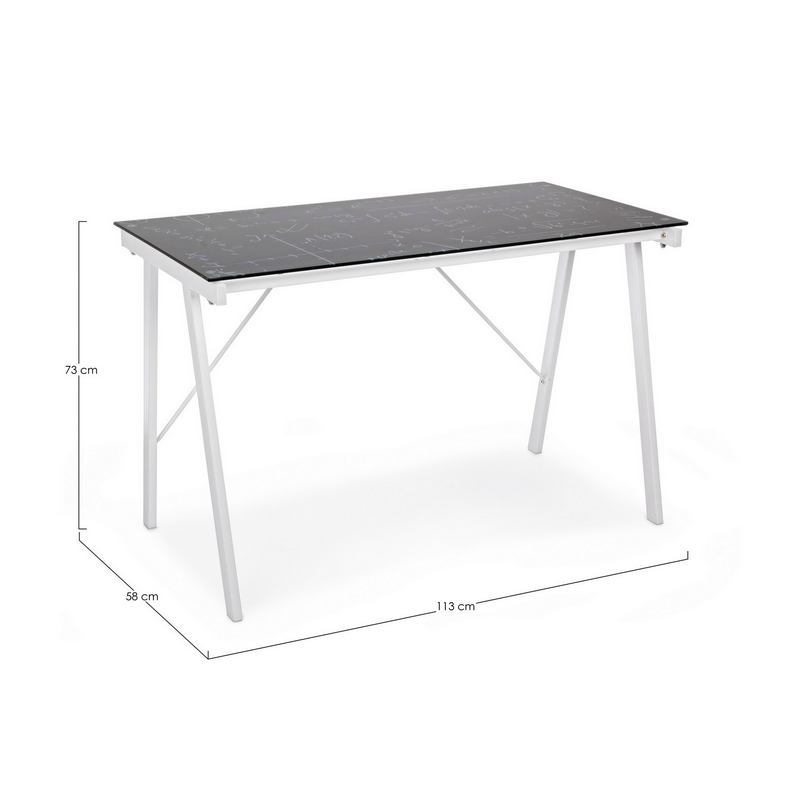 STRUTTURA IN ACCIAIO VERNICIATO A POLVERE OPACA. PIANO IN VETRO TEMPERATO SPESSORE 7MM CON STAMPA.