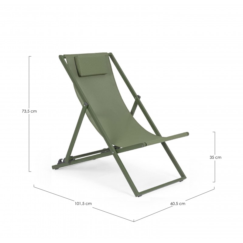 - KLULK Sedia A Sdraio Pieghevole In Alluminio Verde, Telo In Texilene, Schienale Reclinabile 3 Posizioni, 60x101x35 Cm
